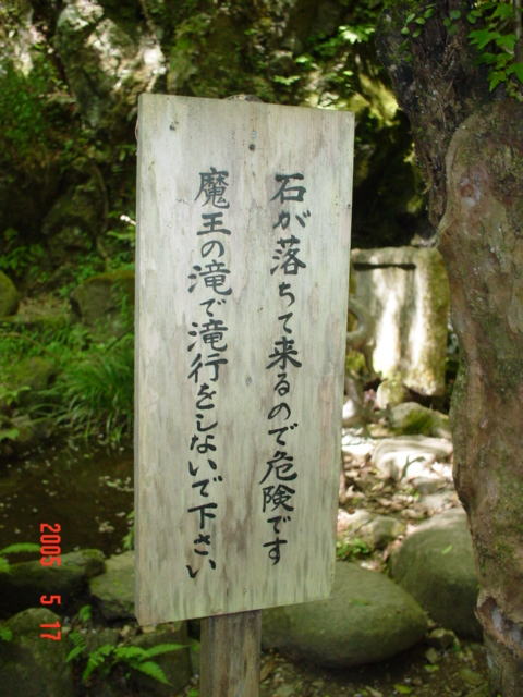 滝行ができそうな、石の仕切りが右奥に見えますか? 良く見たら、立てる所もあるんですね。 こんな人通りの多いところで滝行をする人がいるとは、 さすが修験道の方が好まれるお山でございます。